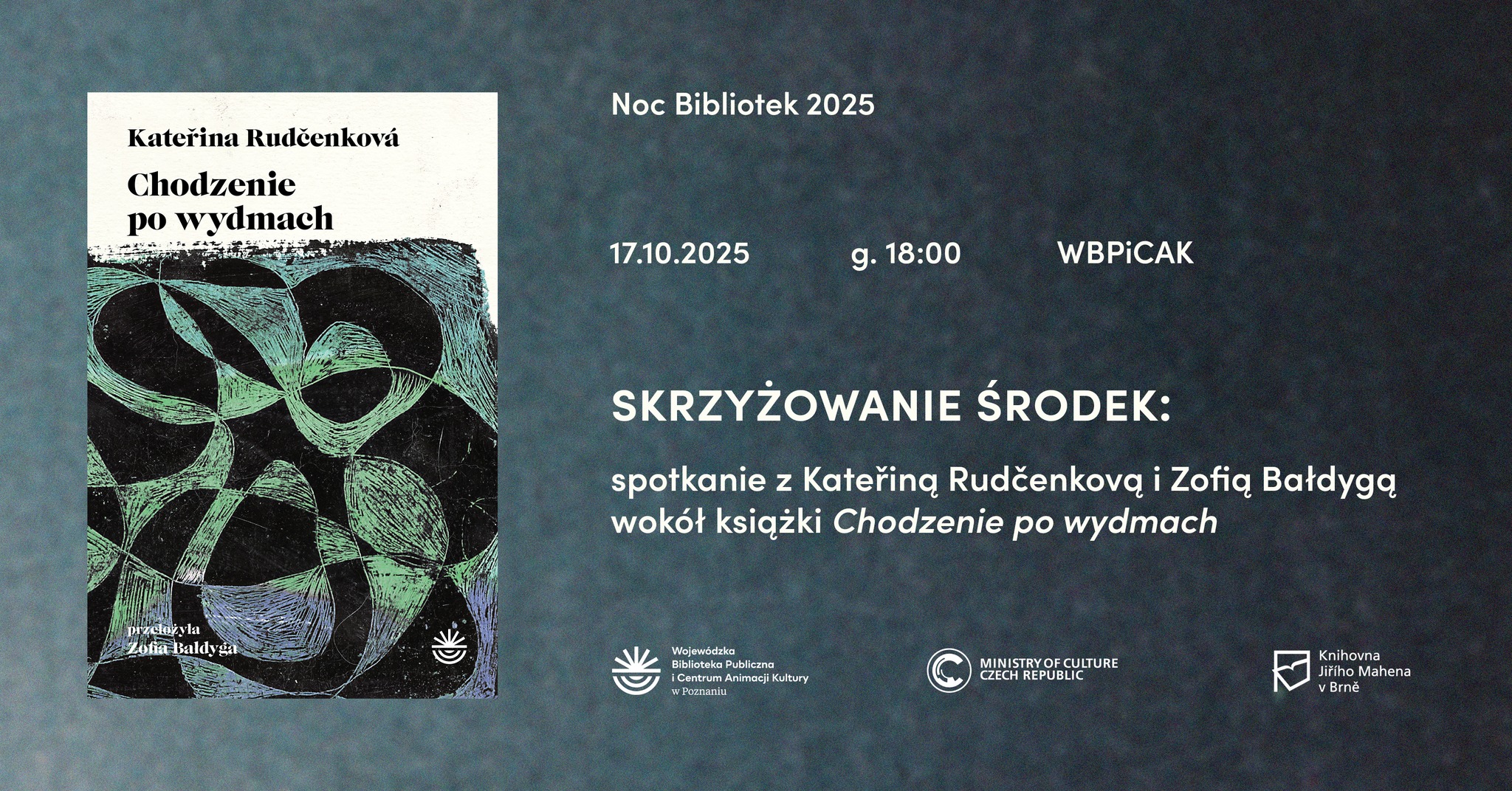 Podczas spotkania porozmawiamy o poezji, która zbija szybkę pozornej obojętności. Twórczość Rudčenkovej, pełna zmysłowych doznań, zapachów i pragnień, to nie tylko filozoficzna uważność, ale też intensywnie żywa materia dotykająca procesów pamięci, miłości i przemijania. Będzie to niepowtarzalna okazja, by zajrzeć za kulisy translatorskiej pracy Zofii Bałdygi, która z niezwykłą precyzją i wrażliwością przełożyła na polski ten chropowaty styl, nadając mu nowe życie.