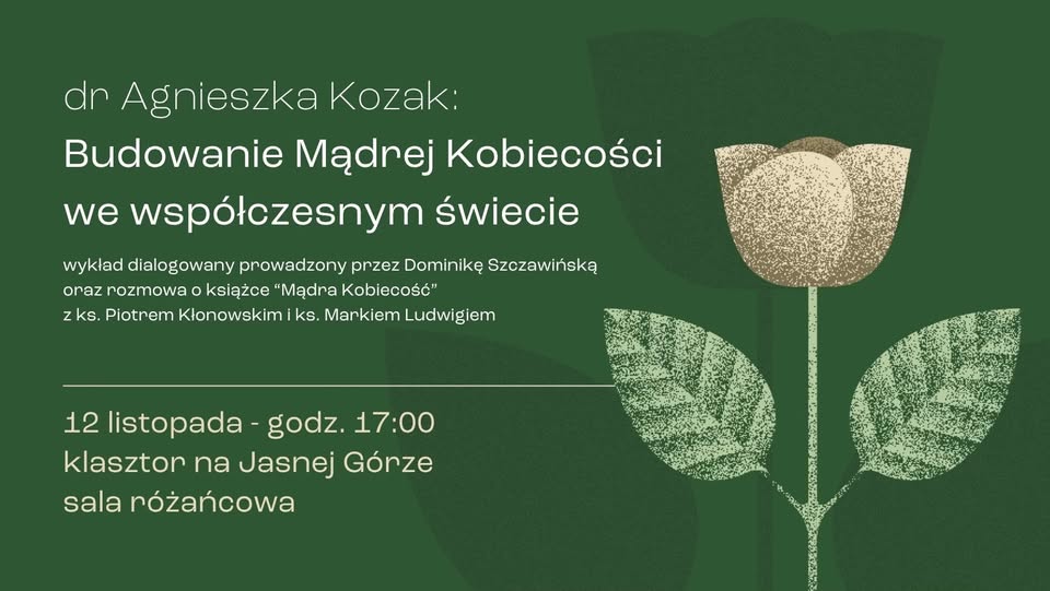 W pierwszej części wieczoru Dominika Szczawińska poprowadzi rozmowę z Agnieszką Kozak, a następnie spotkanie z Markiem Ludwigiem i Piotrem Kłonowskim. Spotkanie jest otwarte dla wszystkich, którym bliska jest refleksja nad sobą, rozwojem i budowaniem relacji opartych na zaufaniu i dialogu.
