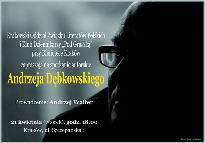 Skontaktuj się z namiKrakowski Oddział Związku Literatów Polskich oraz Klub Dziennikarzy „Pod Gruszką” przy Bibliotece Kraków mają zaszczyt zaprosić wszystkich miłośników literatury na wyjątkowe spotkanie autorskie z Andrzejem Dębkowskim – pisarzem, poetą i wieloletnim obserwatorem krakowskiego środowiska literackiego.