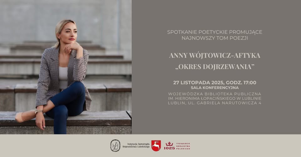 Skontaktuj się z namiWojewódzka Biblioteka Publiczna im. Hieronima Łopacińskiego w Lublinie zaprasza na spotkanie poetyckie promujące najnowszy tom poezji Anny Wójtowicz-Aftyka „Okres dojrzewania”.