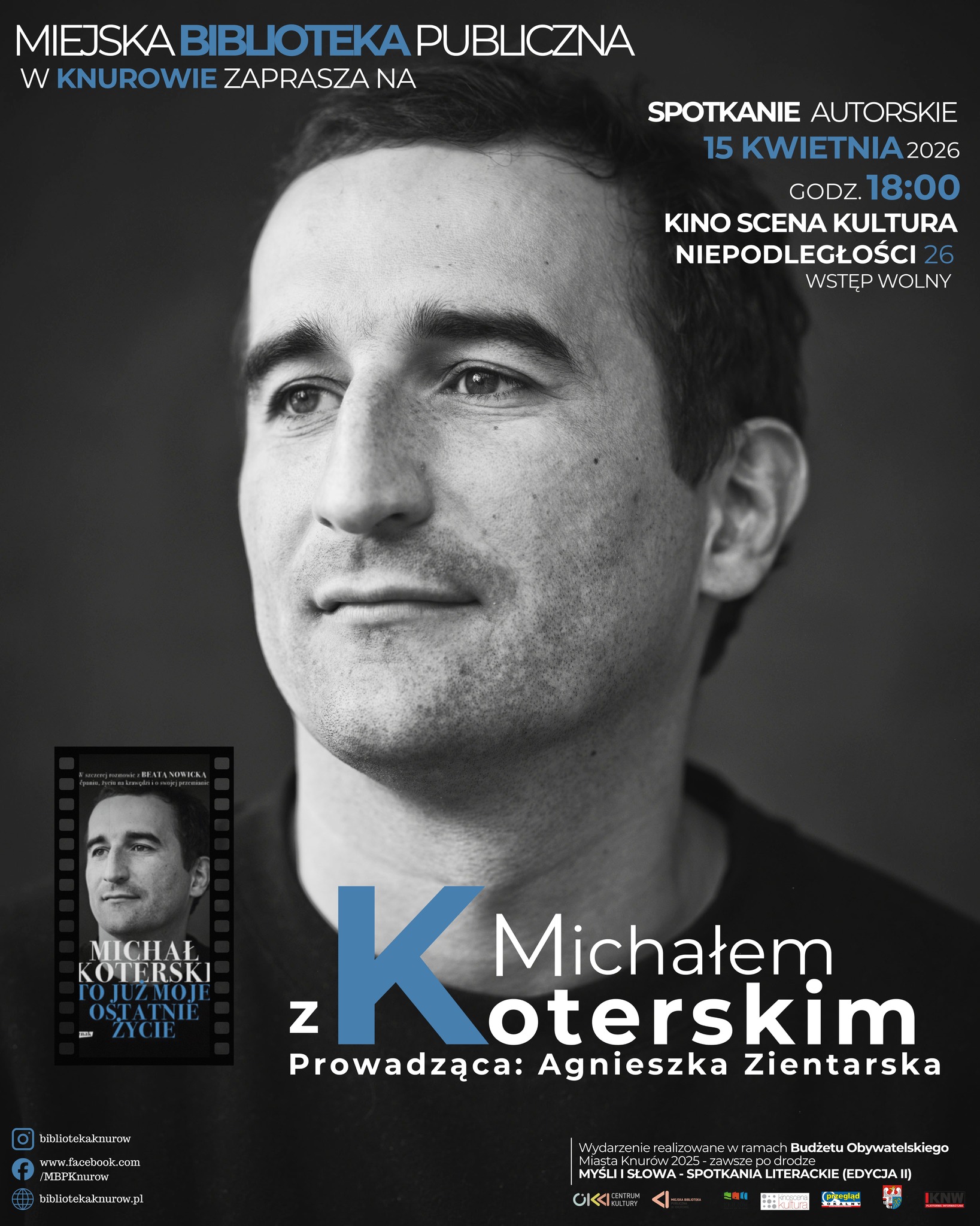 Skontaktuj się z namiMiejska Biblioteka Publiczna w Knurowie serdecznie zaprasza na wyjątkowe spotkanie autorskie z Michałem Koterskim – aktorem, osobowością medialną i współautorem książki „Michał Koterski. To już moje ostatnie życie”. Wydarzenie odbędzie się 15 kwietnia 2026 roku o godzinie 18:00 w Kinie Scena Kultura przy ulicy Niepodległości 26.